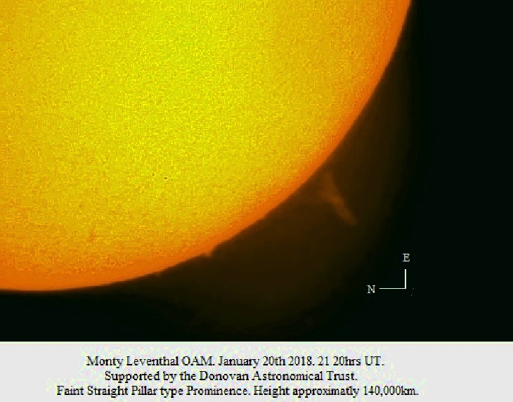 Faint Straight Pillar type Prominence. Approximate height 140,000 km.