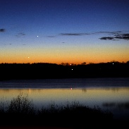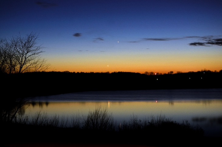 The sunset planets still dominate the Western sky at sundown. I watched them set behind Sand Lake just South of Iowa City.