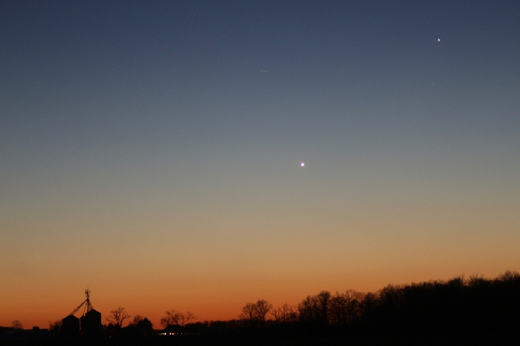 It was a very clear night in northern Ohio, and I was able to get a very nice view of Venus and Mercury over an open field. 2sec at 800 ISO, f/4, 114mm Canon Rebel SL1.