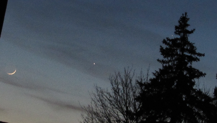 The 35 hour old crescent moon, along with the planets Venus and Mercury setting in the western sky. 8:00 PM EDT on March 18, 2018. Lat: N 40.44, Long: -79.8
