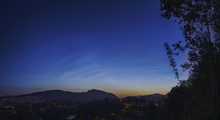 Second night in a row with NLC. This night the NLC's were brighter but the visibility is still moderate as we are here at the northern limit of visibility with the sun only 7 deg below the horizon. Nevertheless, the light at night with the blue-reddish sky is incredible.