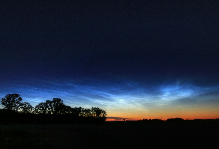 Been watching the skies in hopes that the noctilucent clouds would soon appear. And last night June 11 at around 11 pm they did!! They were so bright and a beautiful electric blue!