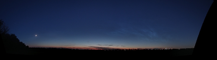 Wide display in azimuth, up to 30 degrees elevation, but not bright. Faded as approaching local midnight.
