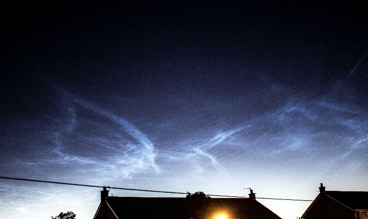 One of a series of bright NLC from mid-June. Seen from 2300 UT until 0200 UT. Max elevation 45 degrees. Canon EOS100D 3.2 sec exp at f4, 100 ISO.