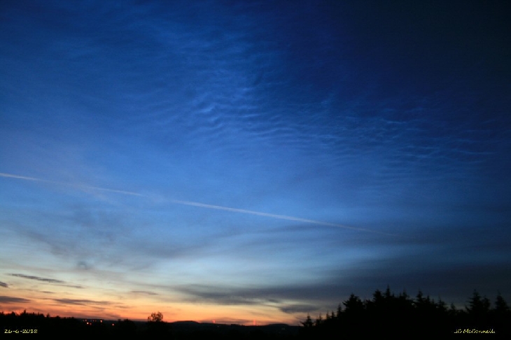 Had been keeping an eye on the NLC brightning and made my way to my observing site. When getting out of the car I noticed the coloured Moon Dog and rushed to get a few images. I have seen moon dogs before but they were always a whiteish colour never coloured. The NLC dispay was a classic and before dawn the ripples were amazing. Canon 400D and various settings.
