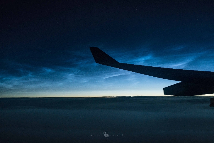 Bright NLC display over Greenland from commercial airline