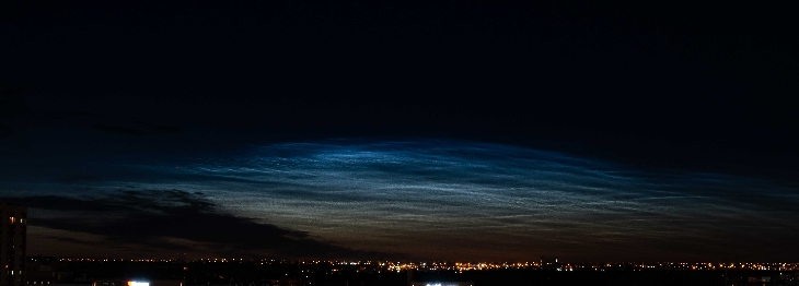 Woke up at just after midnight and looked out my window, north over Edmonton, and was blown away oft how bright and vivid the Noctilucent Cloud was