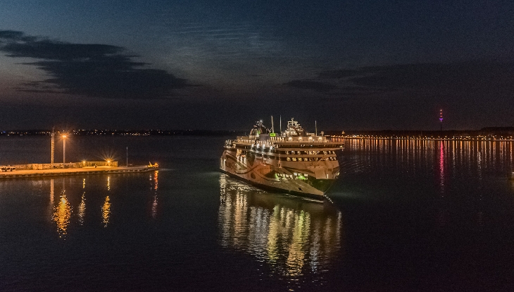 Soon after midnight, it looked like moon was shining between dark clouds. However, half moon was in the opposite side. It was a faint and short display in Tallinna Harbour.