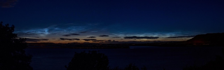Quite a muted display tonight. Sitting about 30 degrees above the horizon. Quite a lot of structure in the clouds.