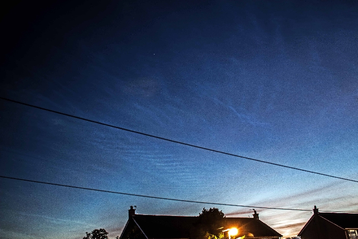 The second display of NLC in August on 03/04 reaching 40+ degrees elevation at 0230 UT
