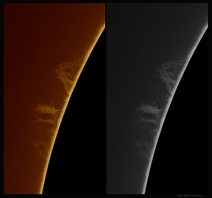 Goodbye sunspots: the two sunspot groups that entertained us for the past few days are preparing for departure. However, a new fairly large protuberance is coming into view.