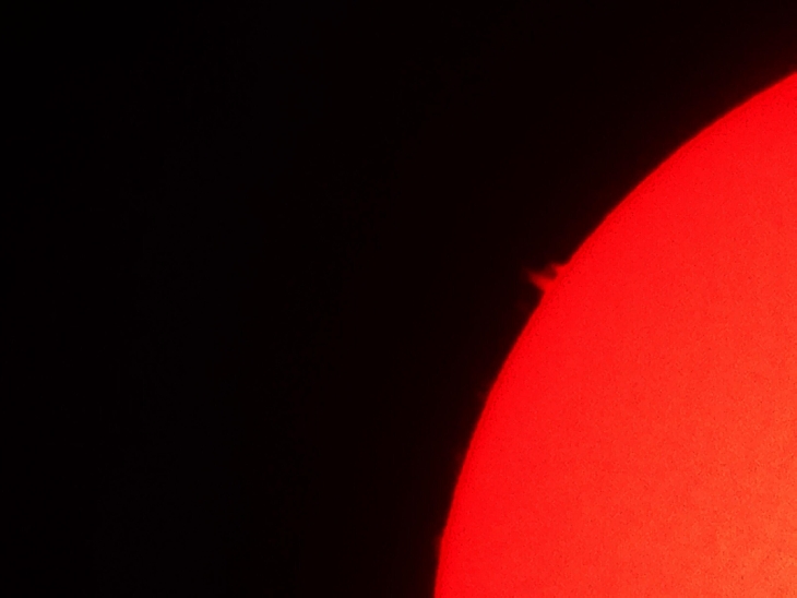 First shot was taken yesterday, 9/12/18, about 10 AM, with Lunt 60 B1200 Ha filter, iOptron smartphone adapter, iPhone 5c, normal camera mode, 3x zoom. Second was today, 2X zoom, with M Cam aps. Last photo at 4X zoom, M Cam.