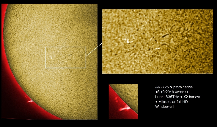 Solar prominences and AR2725 Taken by James Roger Samworth on October 16, 2018 @