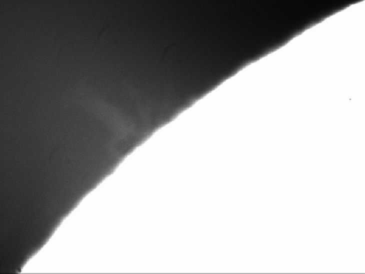 Using a calcium filter I was lucky enough to see one of today's large solar prominence's before the image got obscured by trees .