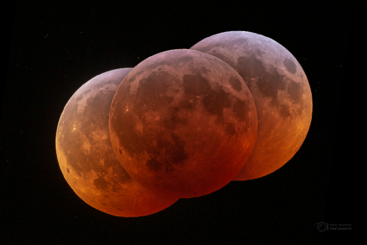 I witnessed it from Boa Vista, Cape Verde, with pretty clear skies, and I somehow couldn't believe it can be such colorful phenomenon even to unaided eyes. Primarily I was happy to see the "turquoise effect" caused by ozone layer, but also differend tints of red-orange on the lunar surface. Shortly: Truly colorful one. The sequence is "standard" start-mid-end of total eclipse (starts on right, ends on left). Used Canon 6D, MTO 1100/10.5, ISO 800, 15s exposures (from Vixen GP-2 mount).
