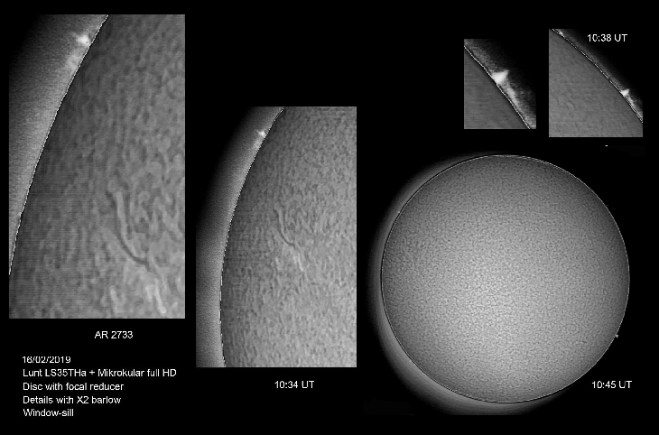 Solar prominences and AR 2733 Taken by James Roger Samworth on February 16, 2019 @