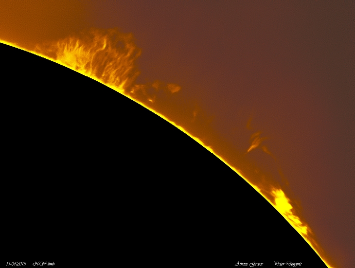 After a long time we see some remarkable activity on the NW edges of the disc. Taking advantage of the good weather in Athens I took some snapshots from the NW edge.
