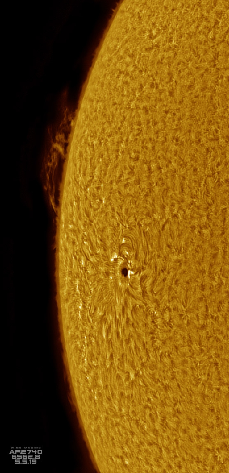 Weather didn't allow much, so I had a brief view of AR2740 at the limb today in HA with an 80mm F21 solar scope.