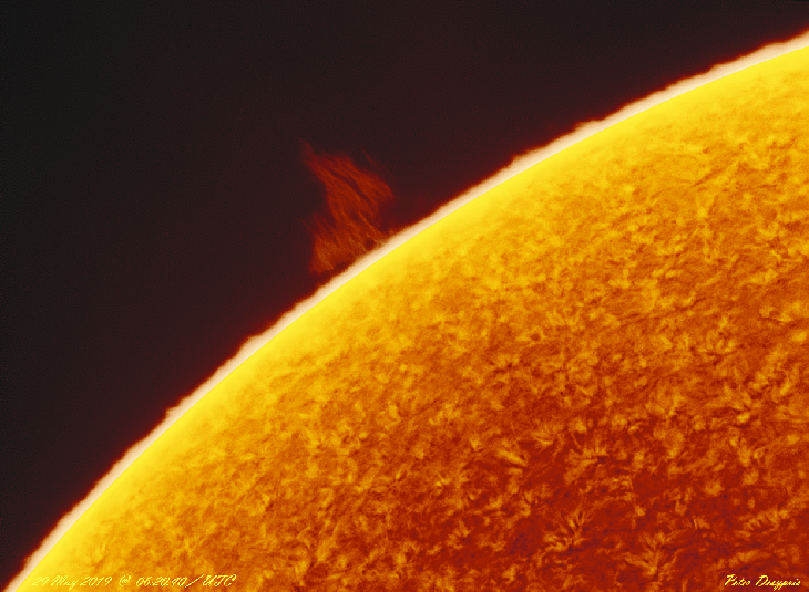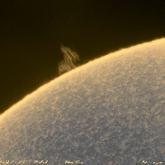 It is a "Quiescent" prom where its shape and structure make it one of the most commonly seen known proms. It will later pass over-across the disk and will appear as a "Filament" ...