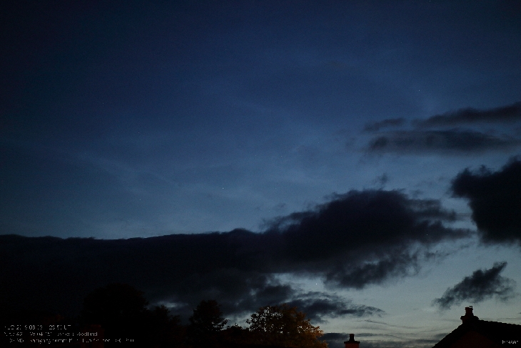 A modest display of NLC in the north-west sky. Visible for 30 minutes before being obscured by thick cloud arriving from the west.