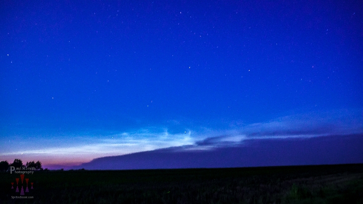 Beautiful Noctilucent clouds shimmering above Kansas severe weather system