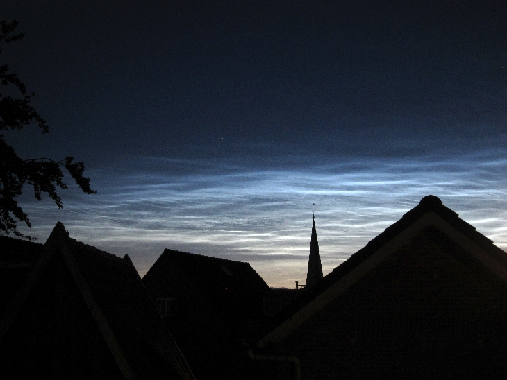 Beautiful noctilucent clouds in Fryslân, Wadden Sea region, The Netherlands. Photo taken on my roof, with Canon S95 compact camera, tripod.