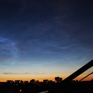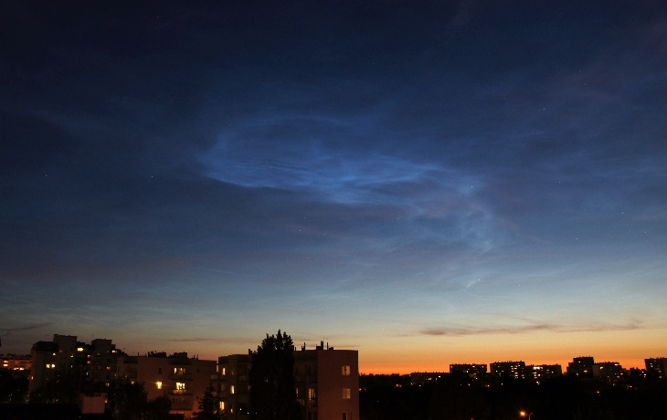 The noctilucent clouds visible at our latitude in Warsaw (52 N) are now not a surprise. “Noctilucent clouds have been creeping south for years “- says Dr.Tony Phillips I photographed so clearly visible NLCs 60 min after sunset, this time like a blue fish in thy sky :)