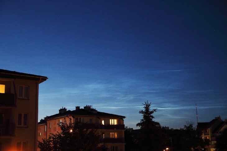Remarkably bright display of NLCs over Poland. Picture taken about an hour after sunset.