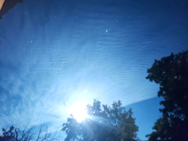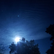 Lower level thin clouds and much higher clouds that look like possible NLC's but are being illuminated by moon. No NLCs visible after sunset so curious to get input on what these are. look like some photos i have seen of Gravity waves? I didn't have a camera but nephew captured these images.