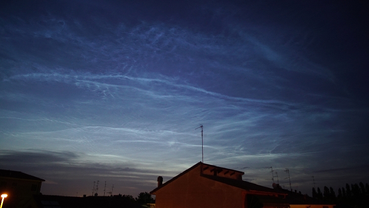 My first observations and photographs of noctilucent clouds, never seen from Ferrara in Italy, were visible up to the Zenith.