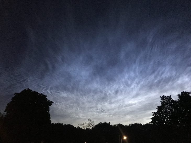 Great display of noctilucent clouds over The Netherlands on midsummer night.