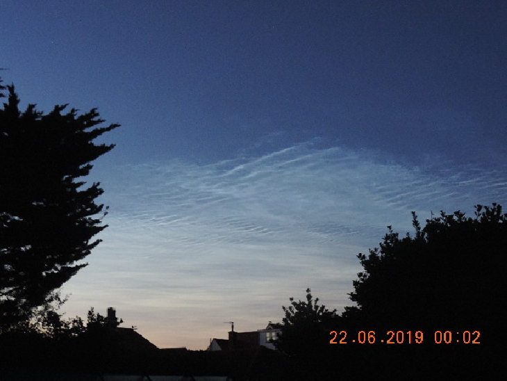 A striking view of noctilucent clouds over Seaford, Sussex, UK at 2215 BST (2115UTC)
