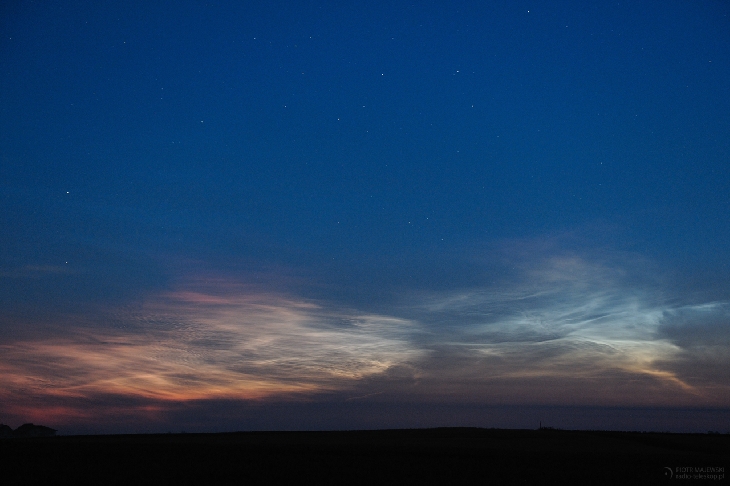 This time the NLC's were unusually bright and colorful! I have seen them such red colored for the first time! What is the reason? The Earth's atmosphere (right after the stormy front) or the Iron particles present in the near Space?