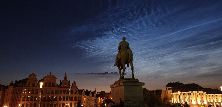 Noctilucent clouds over Brussels at 2300 hrs local time on June 21, 2019.