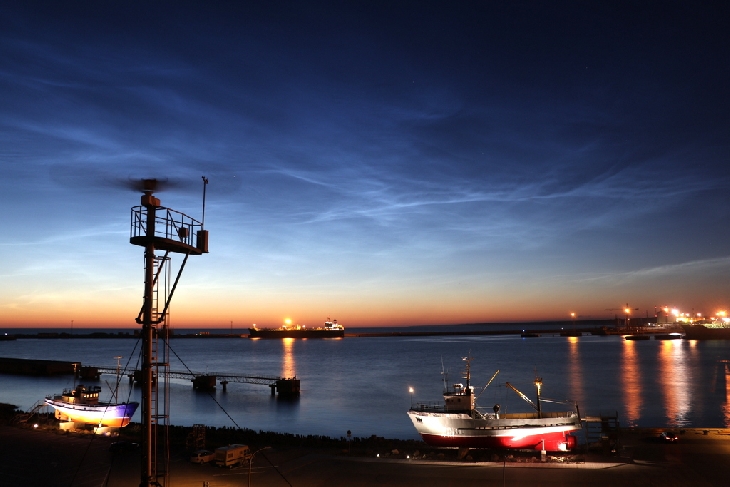 NLC solstice display continues. Electric blue clouds were slightly visible over Baltic Sea near Ventspils