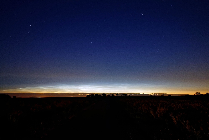 This is my first look at noctilucent clouds, after many evenings to search them without success! What a surprise when, after a star party, driving back to home, I saw the sky so bright at north east horizon. I first believe that this was the ligths of the brightest cities in this direction (Toul and Nancy) or the highway toll. But that was bright NLC.