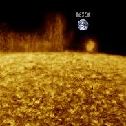 Large Solar Prominence, Spicules & Earth Scale