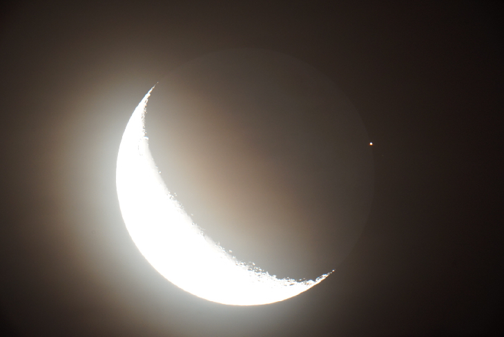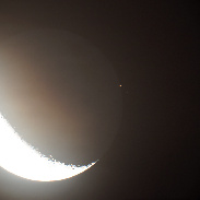 I caught the reappearance of Mars from behind the waxing crescent Moon as it rose over the trees on the horizon about an hour before sunrise. I woke my girlfriend up to join me just before 3rd contact on the Earthshine part of the limb and made it back outside just in time to start shooting. My view on the camera monitor was nice and detailed at 2032mm, but I enjoyed the visual finderscope at 50mm as well. A good shoot. Some high, thin clouds to add some atmosphere. Hopefully I get an HDR image and timelapse out of the data, but here’s my favorite short single exposure with high ISO (plus two unedited bonus images of the closer pairing). Sony Alpha A7Si + Celestron 8” EdgeHD OTA/EVO mount