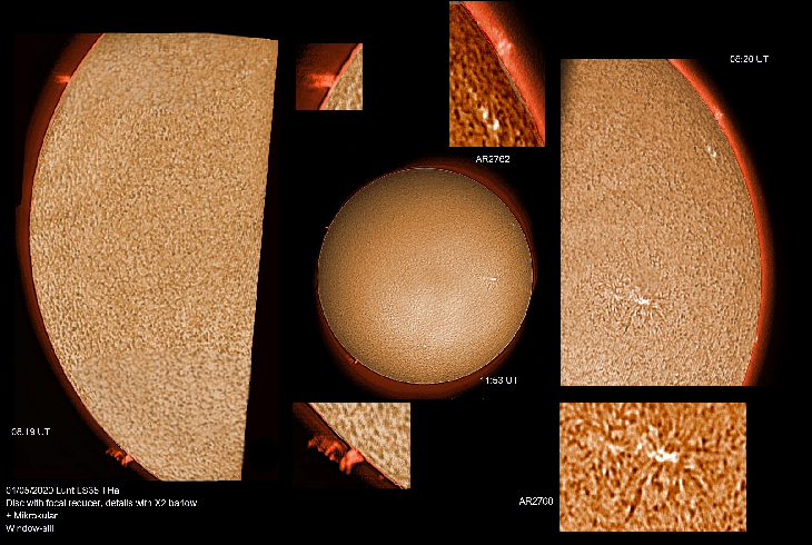 Sunspots and small prominences today.