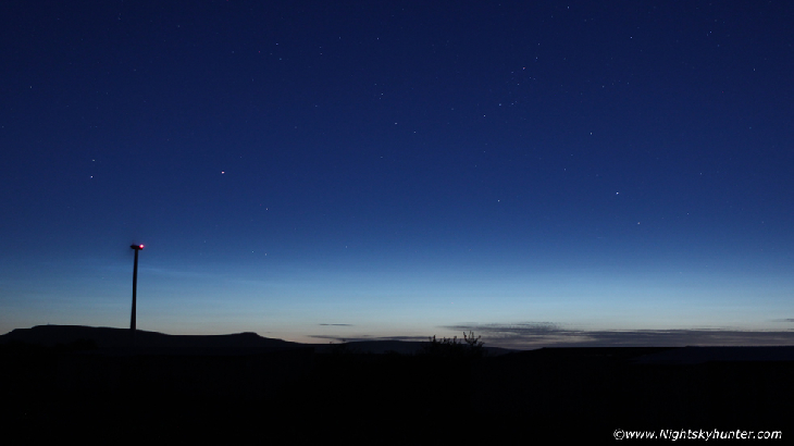 My first observation of NLCs of the season from N. Ireland, type 2 brightness, with soft edged bands and veil 7 degrees in altitude and 60 degrees in length, the camera detected a few knots too, won't be long before the big shows appear.