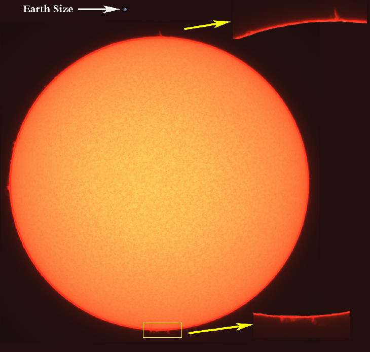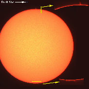 Solar Prominences by Hydrogen Alpha Telescope. 90mm Coronado Telescope. Stack of 50 frames.