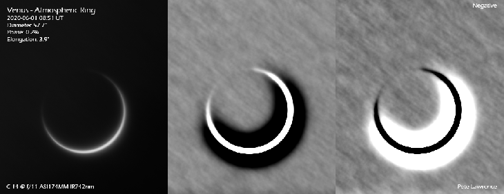 I've been following Venus since January and in May began a sequence of images of the crescent. Today I have concluded my sequence by grabbing the faint non-crescent arc of the atmosphere to form the planet's full atmospheric ring. The last time I was able to capture this rare event was Just before the 2012 transit of Venus, from Svalbard!