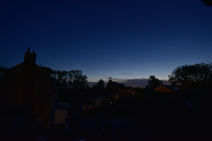 Much suppressed from yesterday morning, but the ripples of nlcs ripples along the horizon at 3:30am.
