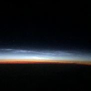 Last night’s skies over the North Pacific Ocean east of Russia’s Kamchatka Peninsula treated us to the largest display of noctilucent clouds I’ve seen to date. I first noticed them in the twilight of the midnight sun north of our position. As we continued northbound, the high altitude clouds were visible over a large area of the northern sky with Capella shining brightly behind them. The view was absolutely amazing, and I apologize for the low quality picture, as it doesn't do the display justice.