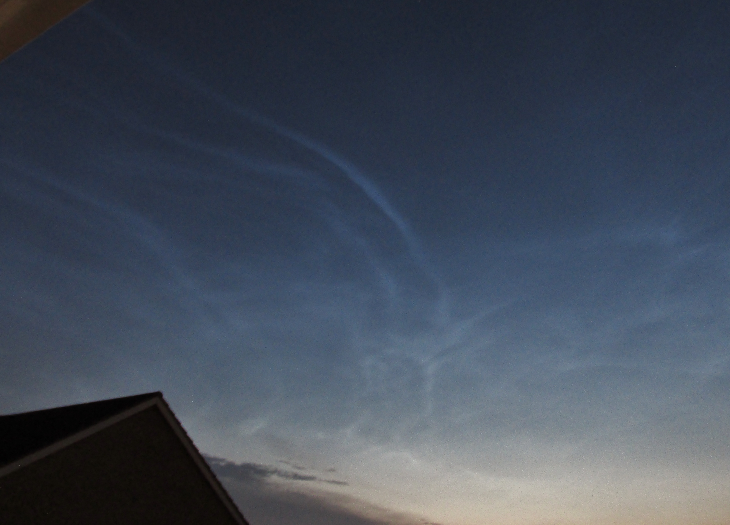 Moon in West and Noctilucent Clouds from NW to NNE.