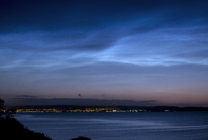 A fine amorphous display of NLCs could be seen from Bangor Northern Ireland. They were bright and high in the north-northeast and persisted until lower cloud moved in after 1am. Although bright, the clouds lacked the detailed ripples and patternation we have come to associate with them.