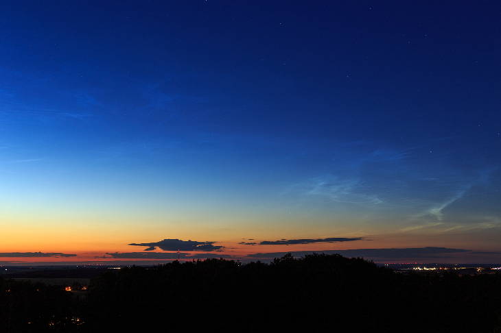 Noctilucent clouds on the evening of June 29th, 2020 around 23:00 CEST. A little weaker, but with a lighter and larger field in the northeast. Taken on the Landberg hill near Herzogswalde/Saxony/Germany. Unfortunately, time is always a bit short, as the job does not yet have an approved summer vacation on the calendar…