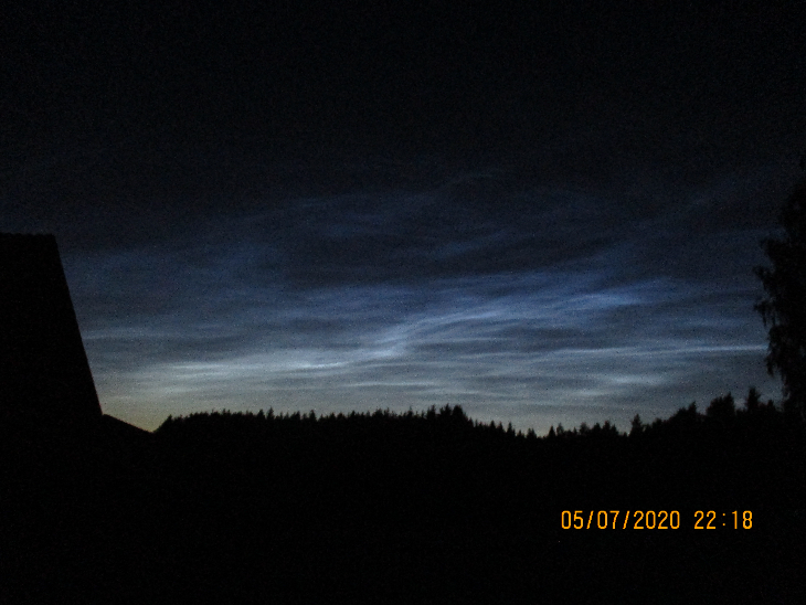 Tonight I saw bright noctlucent clouds over my house at first time ! Between 20:18 and 20:36 UTC I could make 4 fotos with my CANON-IXUS-Digicam in automatic-exposure-modus. At IMG_2640 and IMG_2642 I used the full wide-angle of the zoom-lenses.