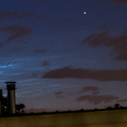 I saw various messages of major NLC outbreak all over Europe, but unfortunately it was very cloudy at my place. But just after mid night clouds broke up a bit and I could get a sneak preview on the noctilucent clouds.