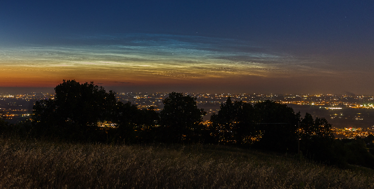 Noctilucent clouds on July 5th 2020 over the Po Valley, northern Italy.